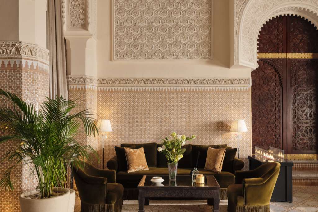 Now it’s a haven for Moroccan elites, who like the European aesthetic and the uncanny wintertime snow. It’s also home to the country’s most unlikely hotel. After a $100 million renovation a decade and a half ago, Michlifen, whose name means “snowflake,” is a grand luxury hotel that’s filled with noble materials and designer furnishings and fabrics from Ralph Lauren, Chellini, Pierre Frey, and Rubelli. Its massive, wood-paneled rooms have various themes, from the American West to the French Alps of Savoie. There’s also an award-winning golf course, the largest spa in Africa, and a stunning swimming pool inside a windowed pavilion that’s perfect for watching the snow fall outside.