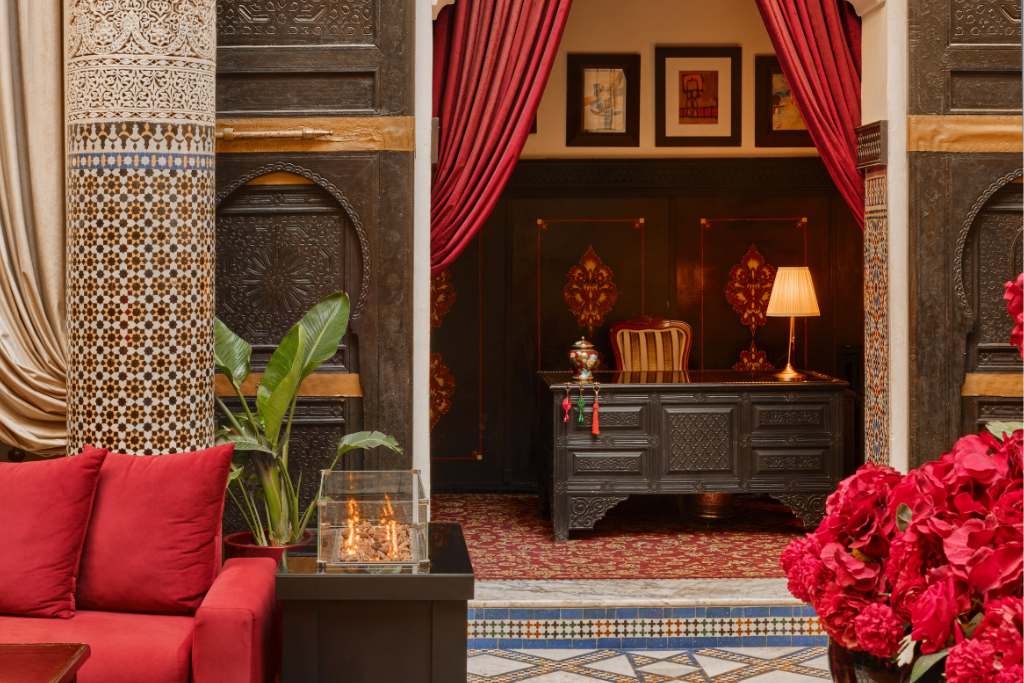 A few months ago, they unveiled a lavish extension, in one of several adjacent palaces that they’ve acquired. Years in the making, the new palace trades Fez’s usual color overload for a stylish white-and-shimmery-cream palette, bringing a new sophistication to the edge of the medina. The top room, though, reprises one of the best design tricks of the original hotel — its dominant color is what they call Hermès orange, a burnt umber hue that’s popular with the fashion set who make this their home in Fez.