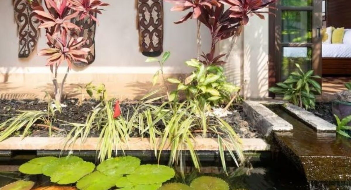 This four-bedroom, three-and-a-half-bath home celebrates island beauty with soaring vaulted ceilings and an airy, open design that brings the outdoors in. Start the morning with yoga in the tranquil courtyard surrounded by koi ponds, lily pads, and lush greenery.