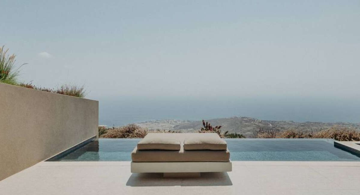 Picture it: Just you and the person you love most in the world under a Santorini sky. Set on the highest point of the island, this home features a dreamy infinity pool, steamy outdoor shower, and modern marble kitchen.