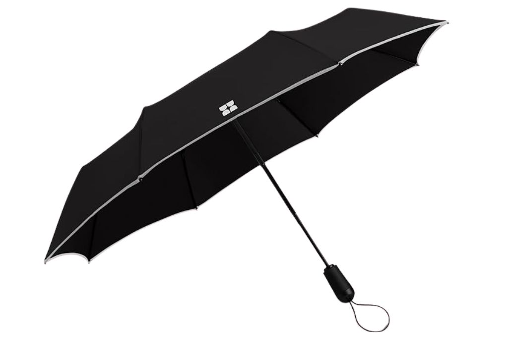 This premium, compact umbrella from Weatherman weighs under 1 pound and is less than 1 foot in size, making it the perfect portable choice. Its industrial-strength fiberglass frame allows it to resist up to 45 MPH winds, meaning you can easily take on any rainstorm.